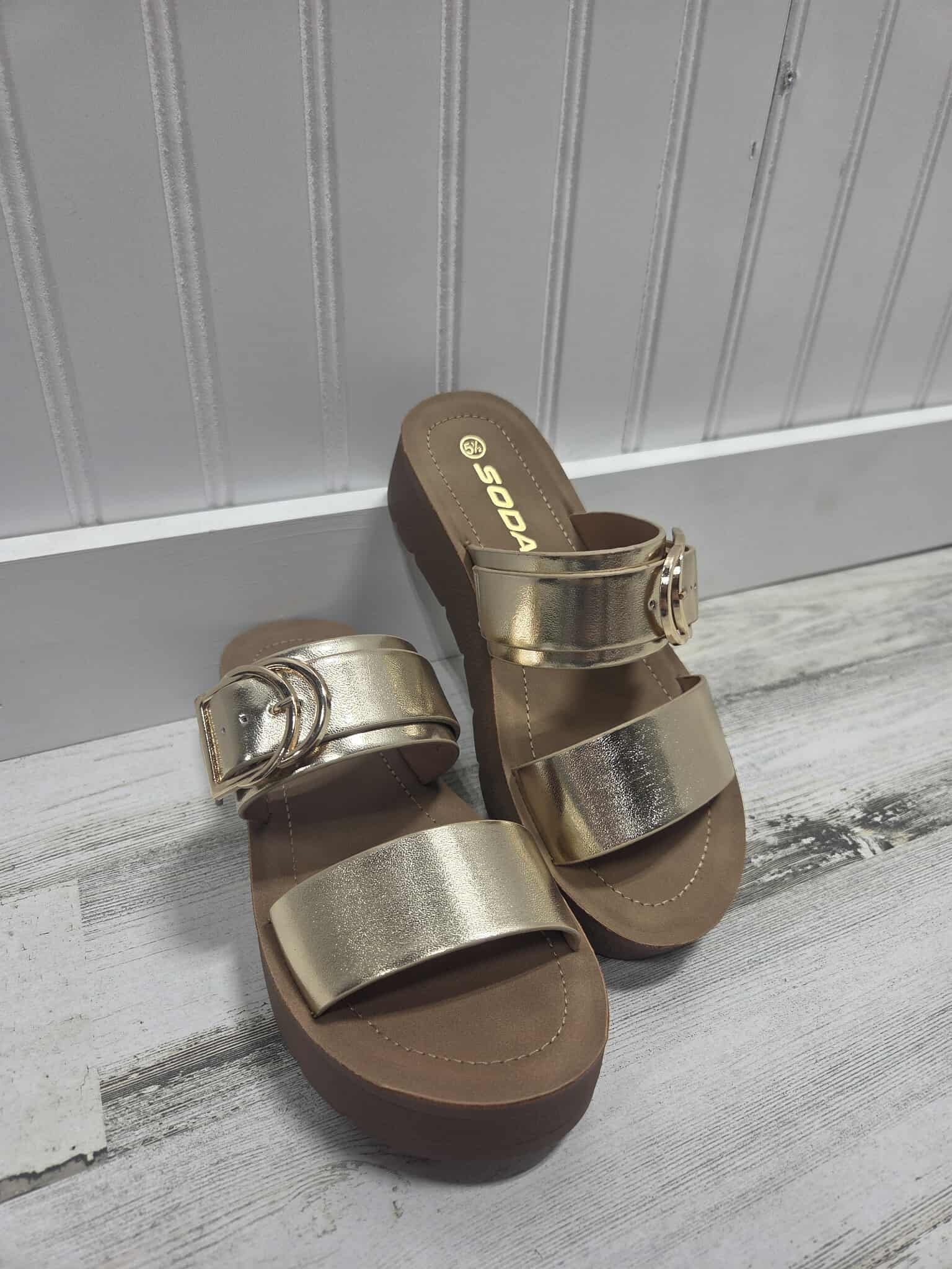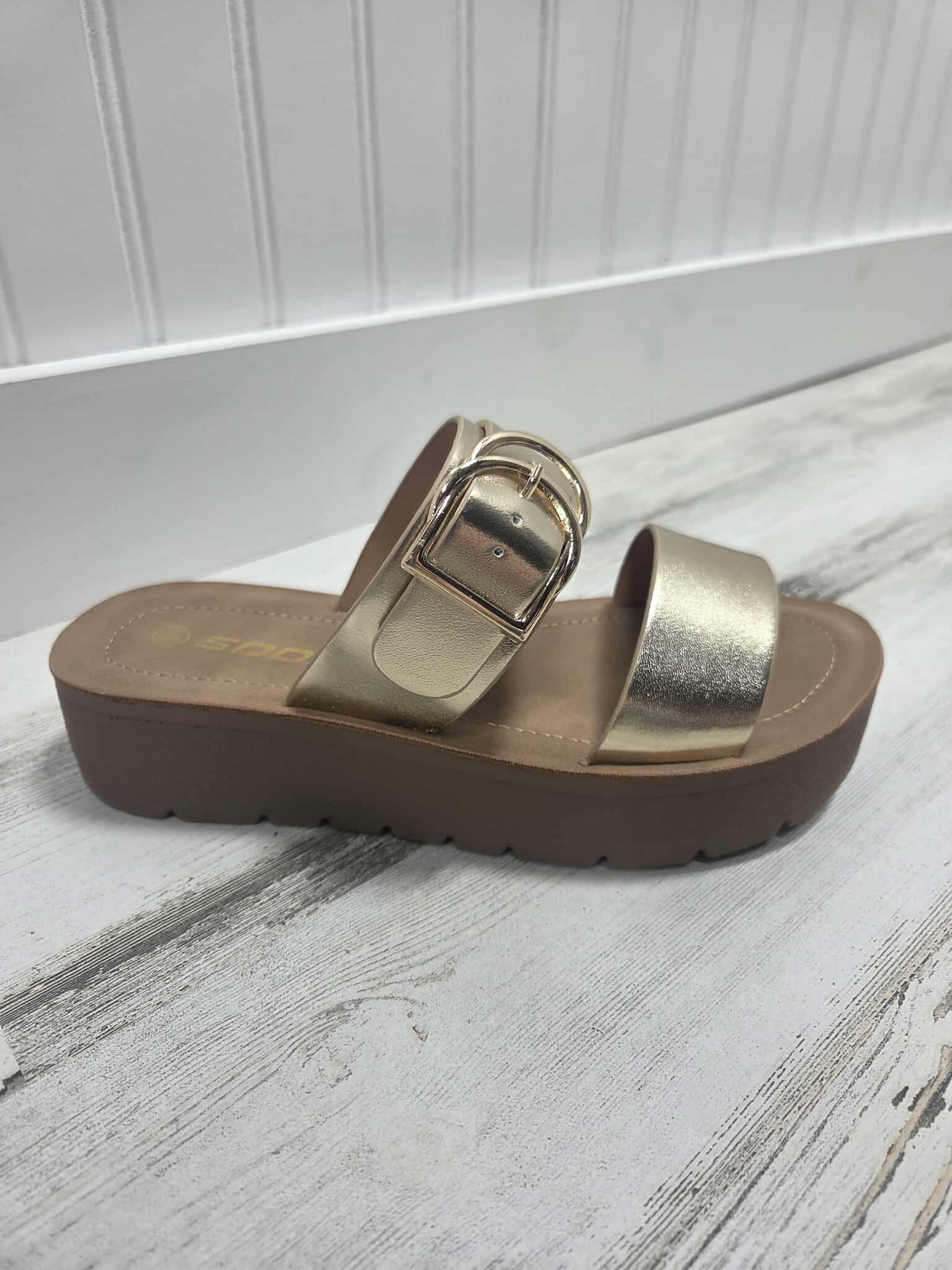 Step into effortless elegance with Bridget Sandals in shimmering gold. These versatile beauties transition seamlessly from beach days to evening outings, adding a touch of glamour to any outfit. The lustrous finish catches the light beautifully, while the comfortable design keeps you feeling fabulous all day long. Whether you're dressing up or keeping it casual, these golden stunners are your new go-to pair.