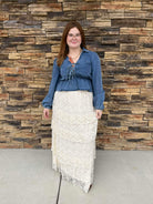 The Rosemary Skirt is your new go-to for effortless elegance. This stunning lace maxi skirt features delicate detailing that catches the light beautifully, perfect for date nights, weddings, or whenever you want to feel absolutely fabulous. The flowing silhouette moves with you, offering comfort without compromising on style. Dress it up with heels or keep it casual with sneakers—this versatile piece works for any occasion. Get ready to turn heads and feel confident in every step.