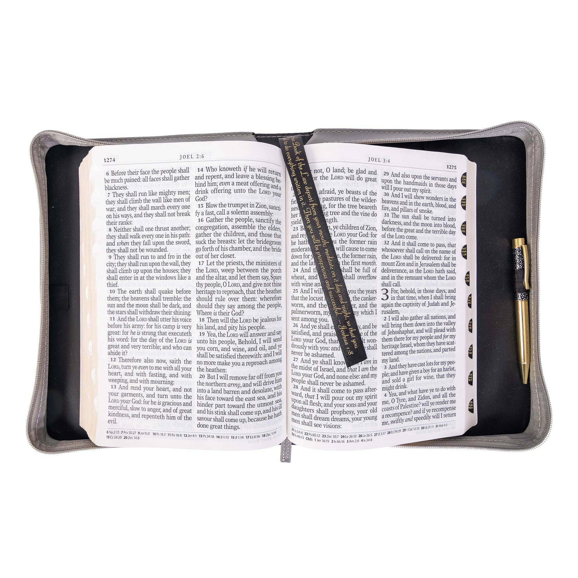 Our Divine Details collection of Bible Covers feature intricate embellishments and fine hot stamp designs, putting this collection in a category all its own. Each fashion Bible cover has a wrap-around zippered closure, spine carrying handle, and a sewn-in ribbon bookmark featuring Joshua 1:8.