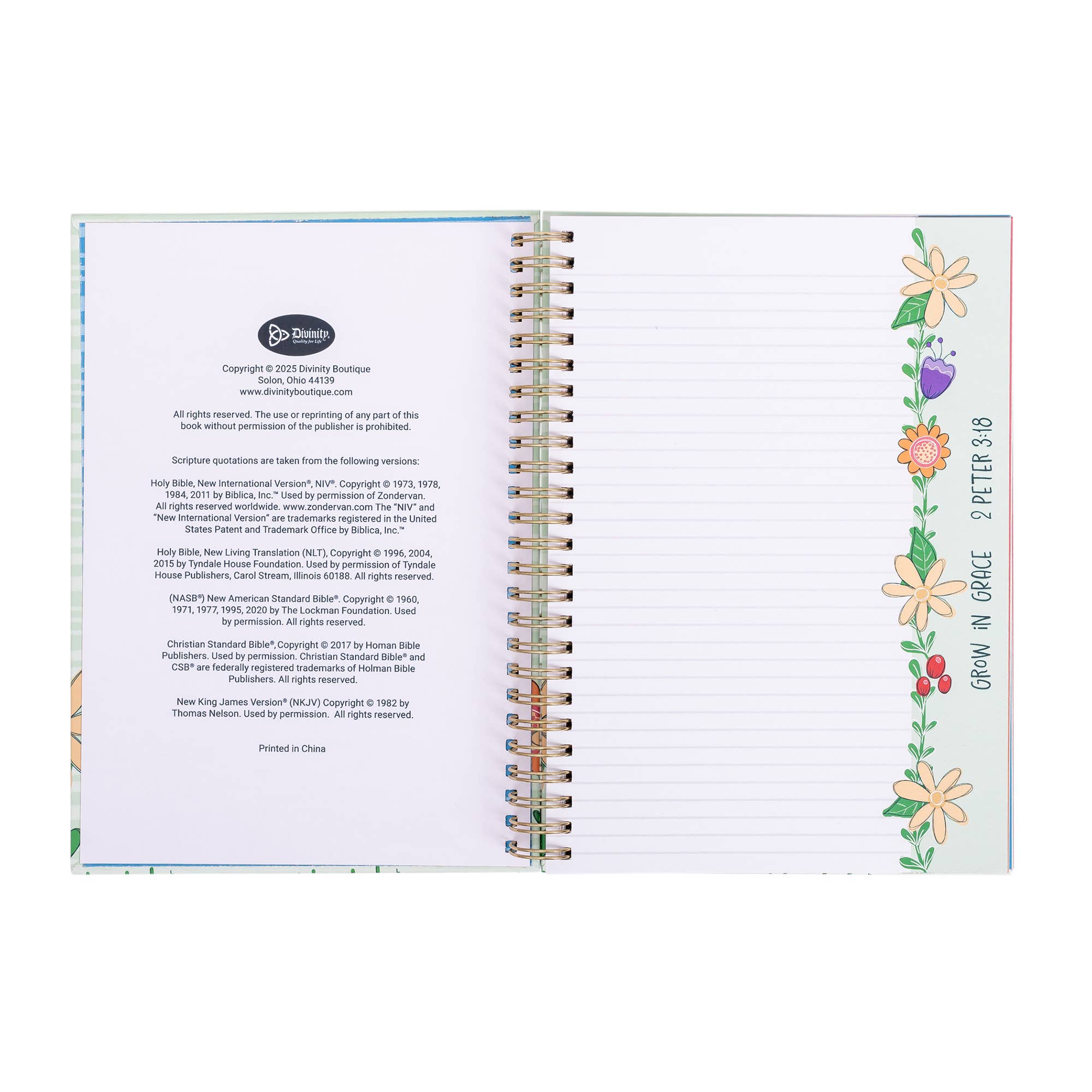 This beautifully designed wiro journal makes space for reflection, prayer, and everyday notes. With 200 lined pages and Scripture on every spread, it’s filled with encouragement from cover to cover. The sturdy wire binding allows it to lay flat or fold back, and full-color artwork on every page adds a thoughtful, uplifting touch.