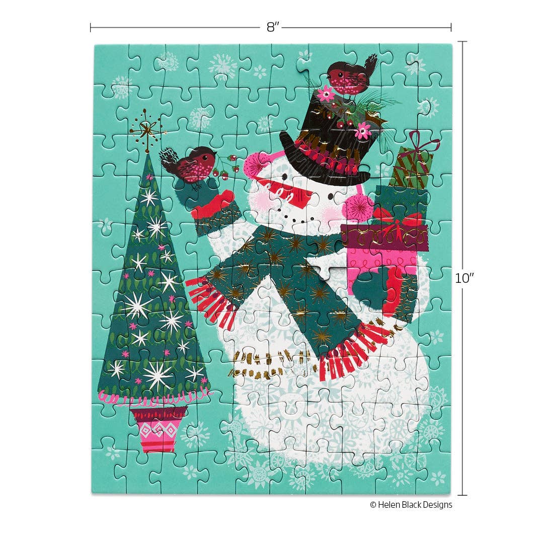 Mr. Snowman is doing his part to put the finishing touches on the holiday season. This 100-piece puzzle with gold foil accents is a perfect stocking stuffer or gift for all ages.