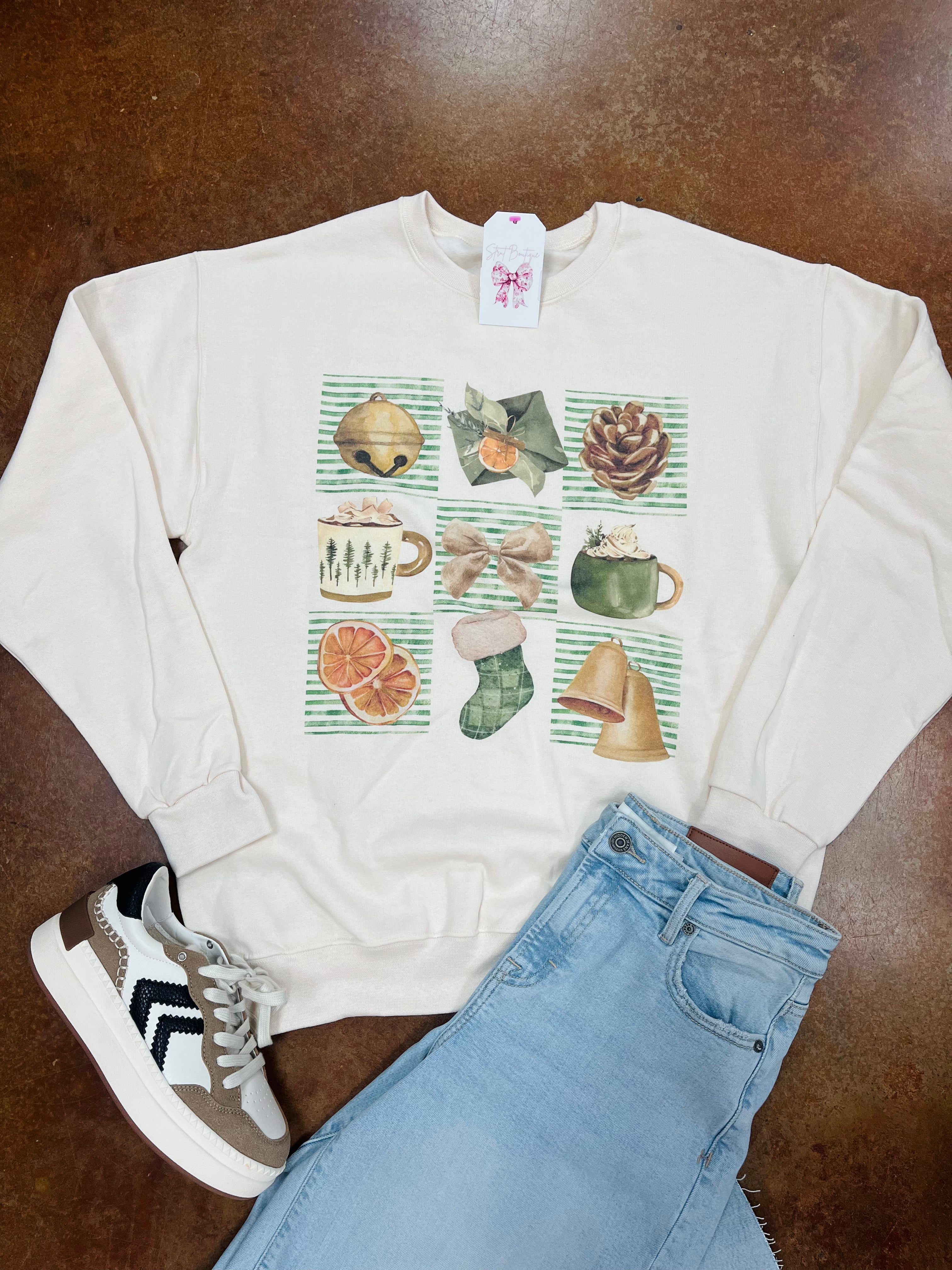 Celebrate the season in style with the Evergreen Tee, featuring a charming vintage holiday design. Its cream-colored base highlights a playful grid of watercolor illustrations set against green stripes, creating a cozy, rustic vibe. Soft and warm, this tee is your perfect companion for holiday get-togethers or casual festive fun. Embrace comfort and cheer in one delightful package!