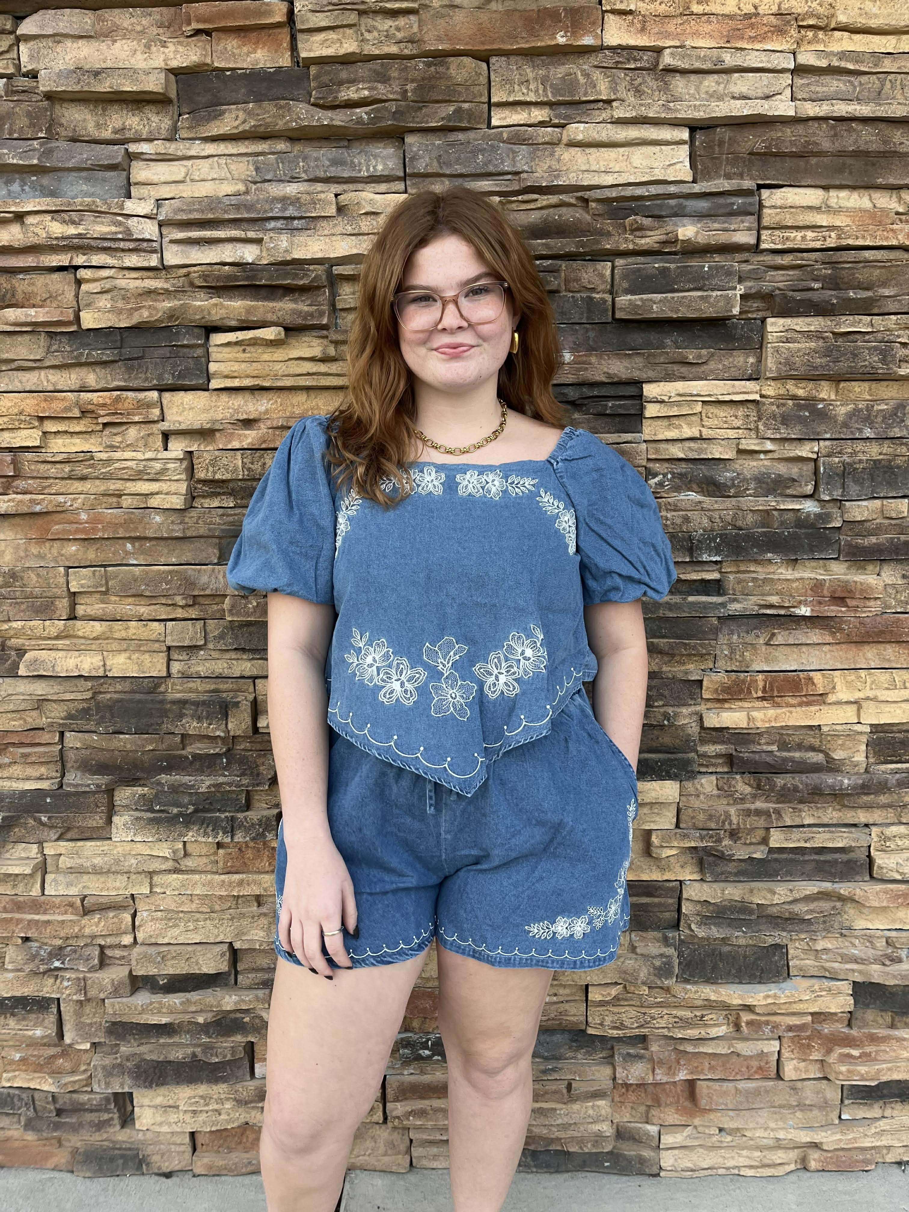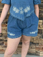 Twirl into spring with the Aria Shorts, featuring delicate floral line embroidery that adds a touch of botanical charm. The flattering flare silhouette creates effortless movement and vintage-inspired style. Pair with the matching embroidered top (sold separately) for a coordinated look that's equal parts sweet and chic. Perfect for brunch dates, garden parties, or whenever you want to feel like the main character.