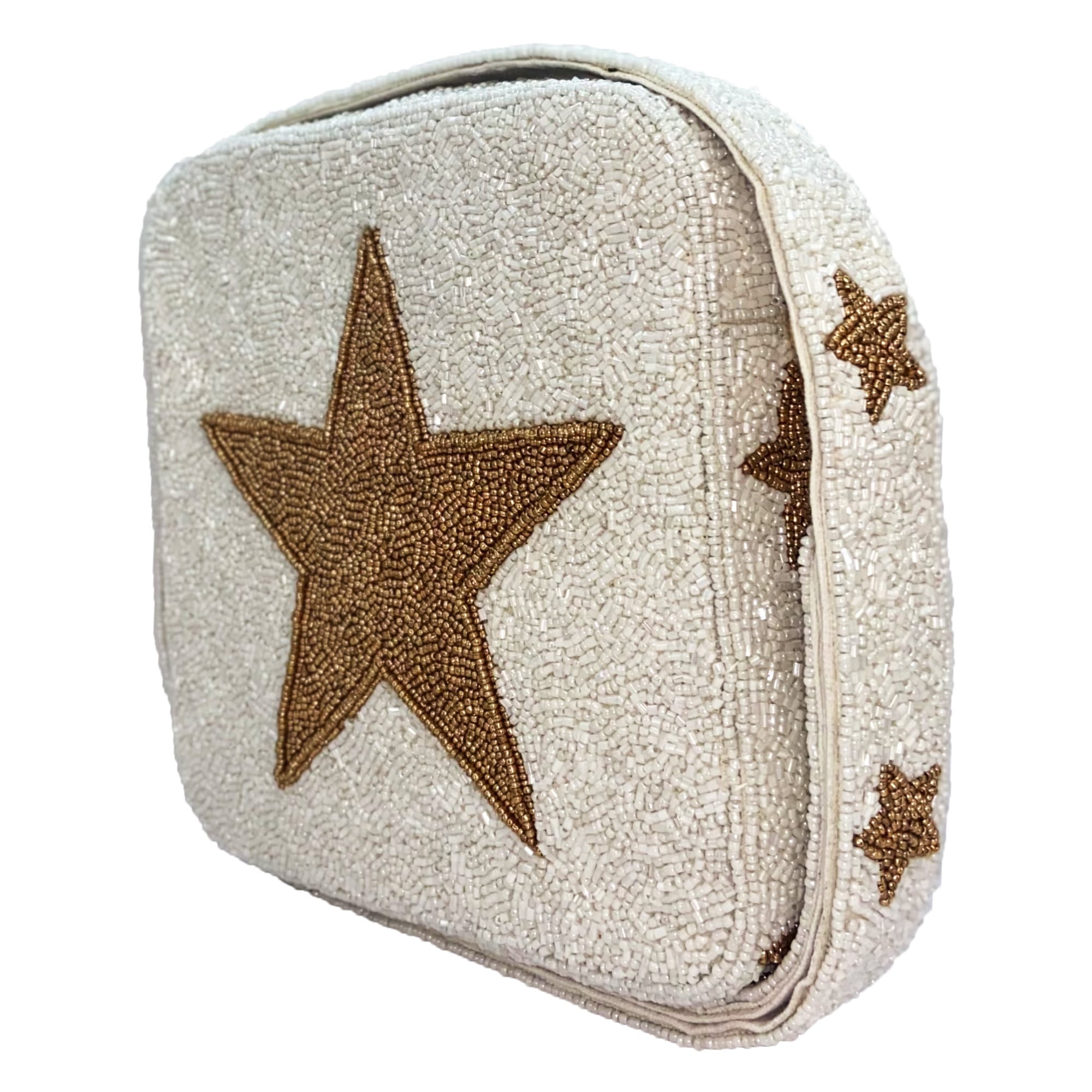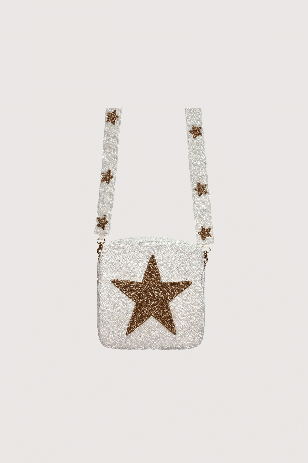 The Blaire Beaded Crossbody turns heads with its hand-applied bronze star-shaped beads, adding a touch of sparkle to your day. Crafted from high-quality 100% cotton, it’s both soft and sturdy. The securely attached strap, featuring playful star details, keeps your essentials close while adding fun flair. Finished with metallic clasps, this compact 8″ x 2″ x 8″ bag brings effortless charm to any outfit.