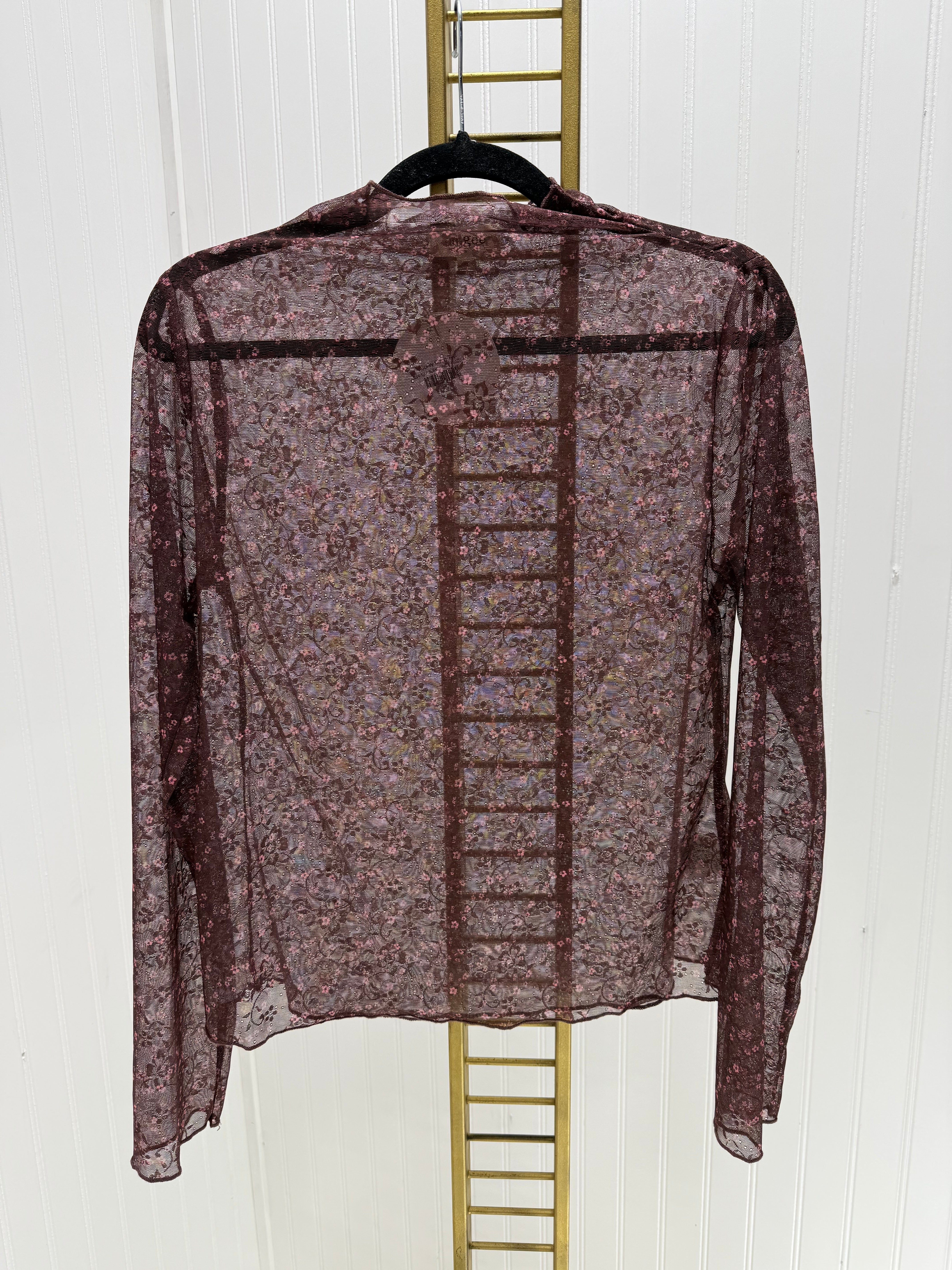 Elevate your layering game with the Curvy Leah Top—a sheer nylon mesh long sleeve that's equal parts sultry and chic. The delicate ribbon pattern and high mock neckline create an effortlessly sophisticated vibe, while the stretchy polyester-spandex blend moves with you all day. Unlined for that modern, daring aesthetic. Perfect as a standalone statement piece or layered under your favorite basics for an edgy twist.