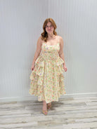 Twirl into spring with the Tula Dress, a charming cotton number that celebrates the season with an all-over tulip print in soft lavender, peach, coral, and green. The fit-and-flare cut cinches at the waist before flowing into playful tiered ruffles that move with you. A scooped neckline and adjustable spaghetti straps keep things breezy and feminine, while the smocked back panel adds stretch and comfort. Hidden back zipper and full lining complete this garden-party-ready essential. Perfect for spring celebrations and those picture-perfect moments.