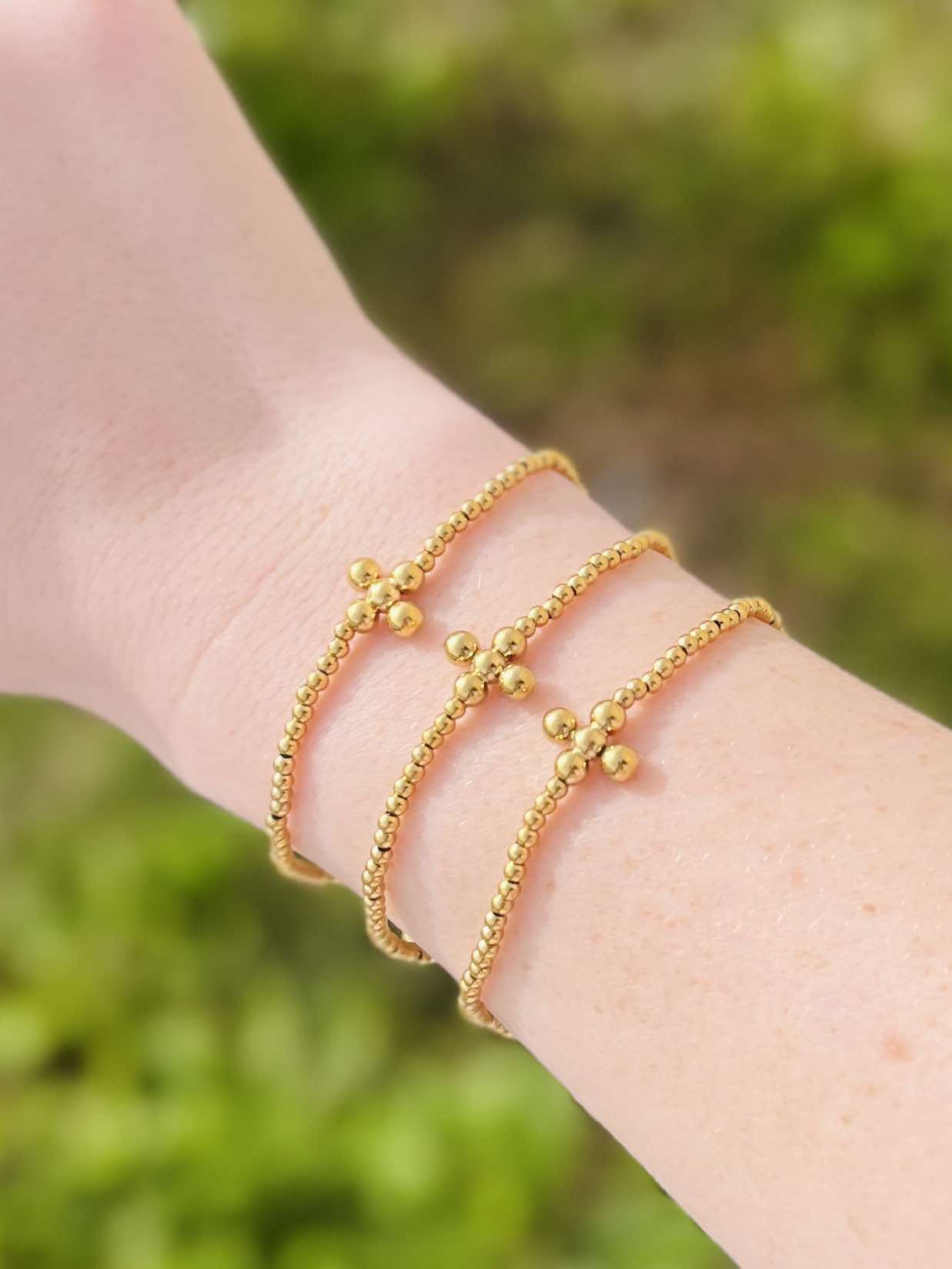 Add a touch of elegance to your everyday look with the "Lila Waterproof 18k Gold Beaded Bracelet." Featuring delicate, non-tarnish 18k gold beads, this bracelet is designed to withstand daily wear and water exposure while maintaining its radiant shine. Perfect for layering or wearing solo, the Lila bracelet is a versatile addition to any jewelry collection. Material: Gold-Plated, 18k gold plated beads