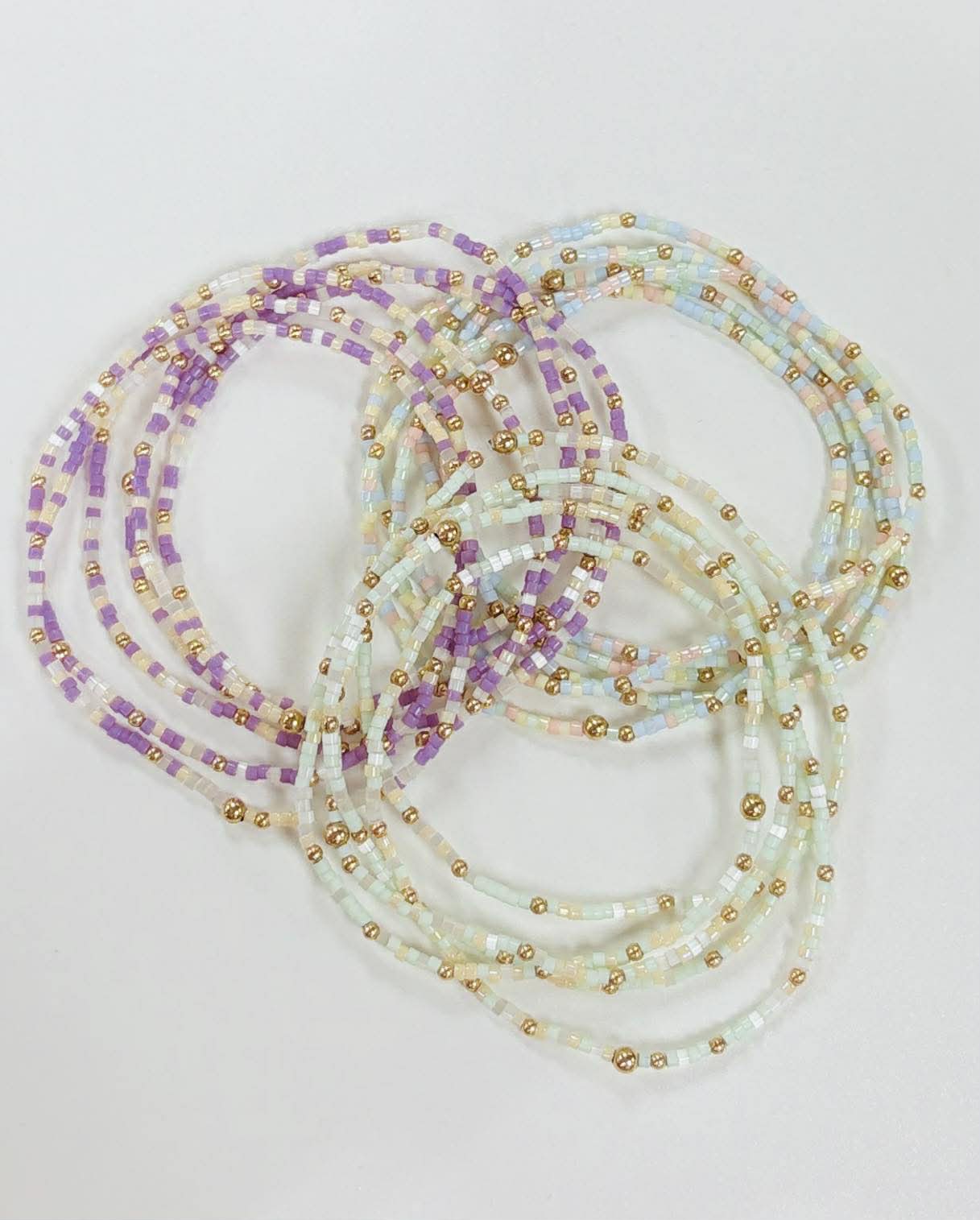 Brighten your wrist with our Spring Fling Bracelet Stack! Each vibrant color combination features delicate glass seed beads paired with elegant 14k Gold Filled accents that catch the light beautifully. Strung on durable stretch cord, these bracelets slip on effortlessly and adjust to fit most adult wrists perfectly. Mix, match, and layer them for endless styling possibilities—because spring is all about having fun with your accessories!