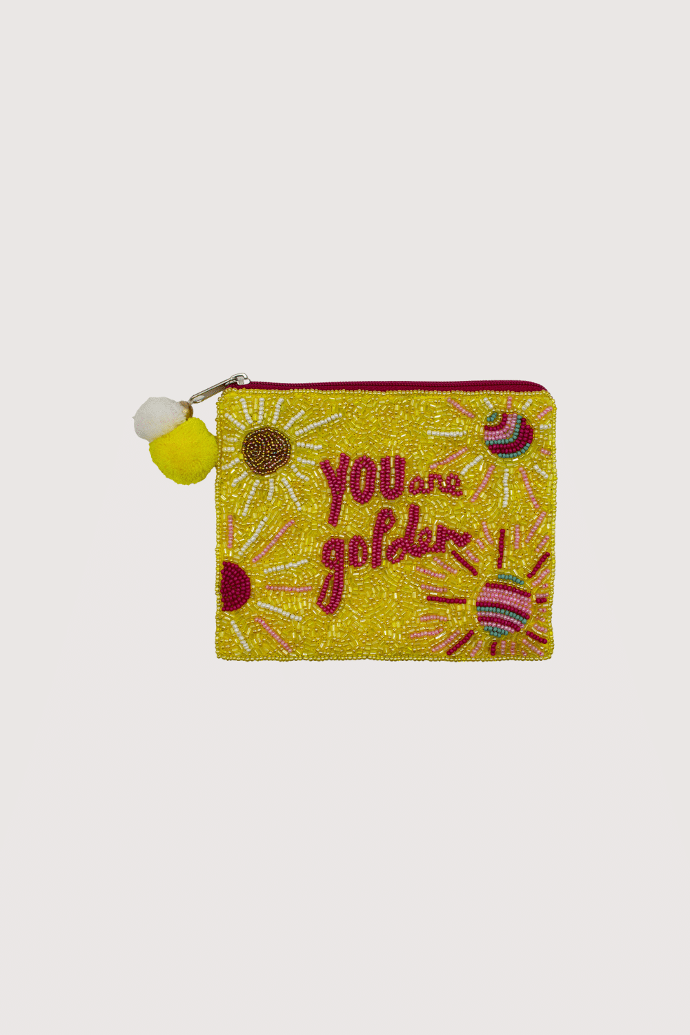 This Summer Beaded Pouch adds a sunny sparkle to your essentials with its bright yellow beaded background and cheerful sunflower and floral accents. The secure zipper, topped with a playful pom-pom, keeps your items safe while the durable cotton-lined interior ensures lasting use. Perfect for carrying your small treasures with a fun, summery vibe!