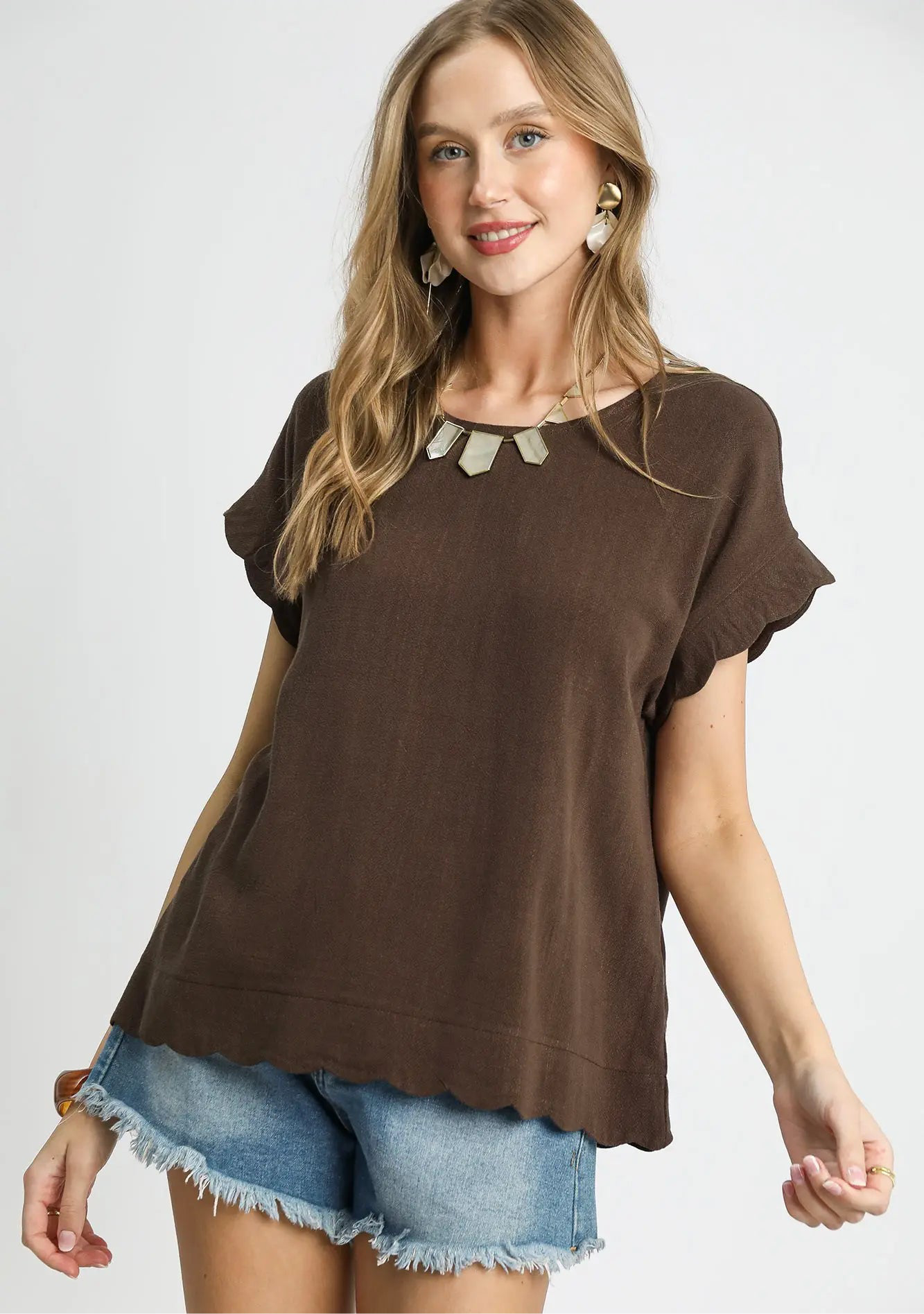Meet your new warm-weather favorite: the Tracy Top. This playful piece combines a soft linen-cotton blend with charming scalloped details on the sleeves and hem for a touch of whimsy. The relaxed fit and round neckline keep things effortlessly comfortable, while the unlined construction lets your skin breathe. With 55% linen and 45% cotton, it's the perfect balance of style and ease for those breezy days ahead.